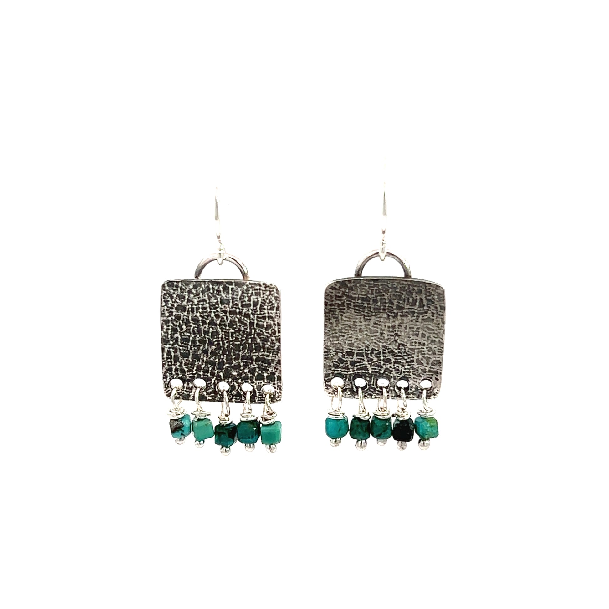 Roll printed and oxidized to show detail, these new sterling earrings measure 1/2" width and 1" in length. Lightweight with lots of shimmery movement.